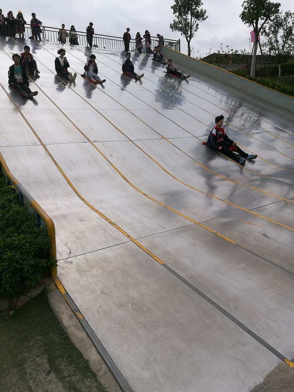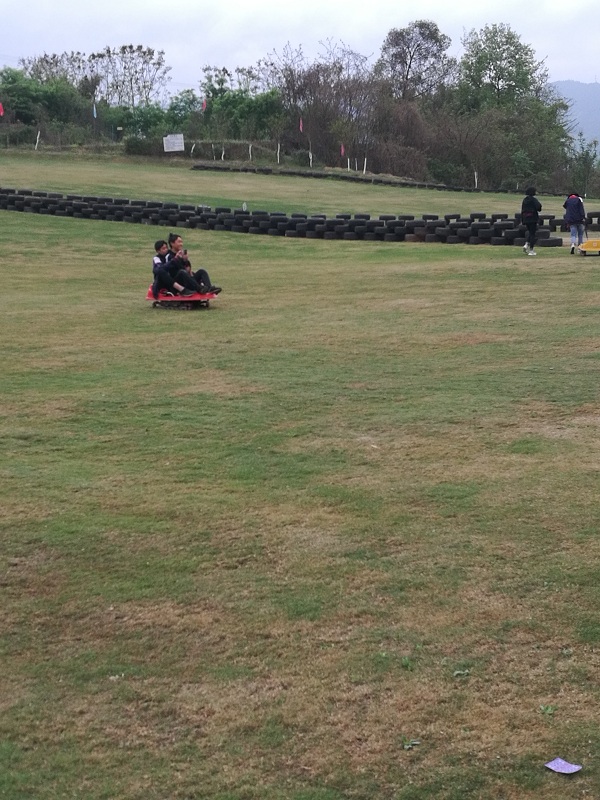 “好!”我们更加兴奋了,因为滑草这个项目太吸引人了,一进乐翻天进大门就可以看见,我们进来的时候就看见有人在那里玩,可惜当时教官没有带我们去。