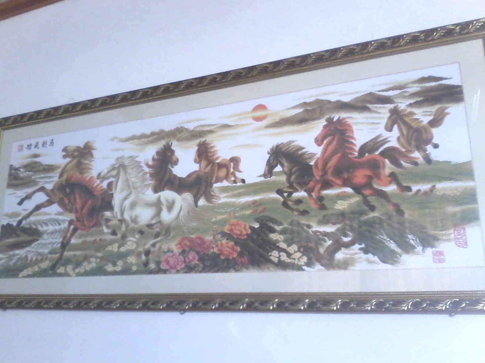 听了我的介绍,大家是不是对八骏图有了了解。妈妈把绣好的十字绣框在了一起,挂在客厅的墙上很漂亮,是一个好的装饰品。而且寓意也很好,象征自由积极向上的精神.