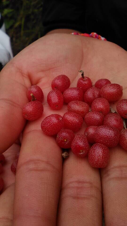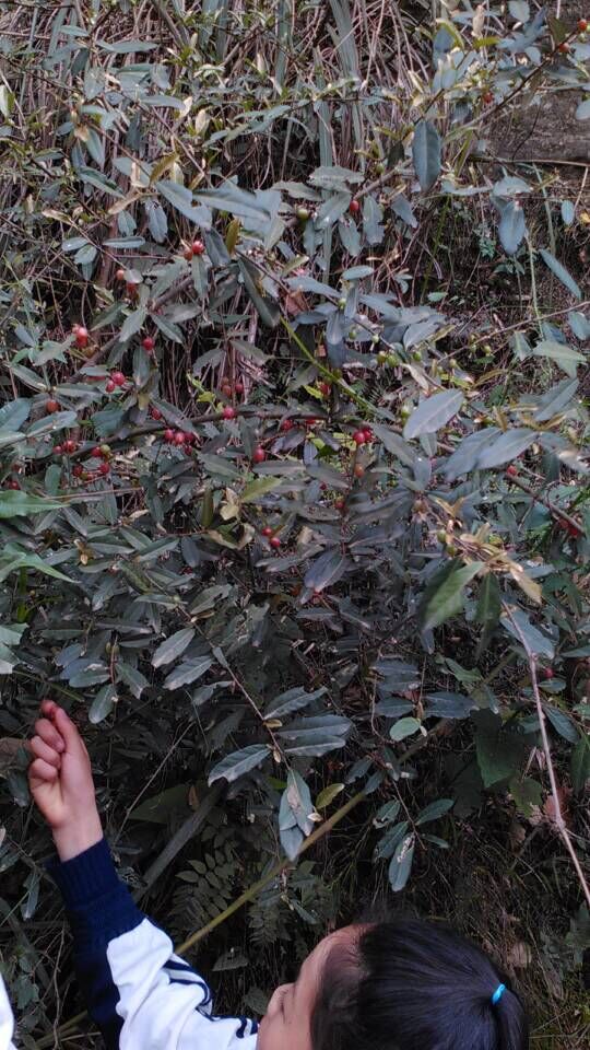 忽然走在稍微前面的我,看到一树稀有的玩意儿。只有半个小指头那么大的红彤彤的果实。可还记得,那曾是我们儿时的最爱,它长得很可爱,还可以品尝。最主要的是它非常讨孩子们的喜欢,当然包括我们那永远也长不大的童心。