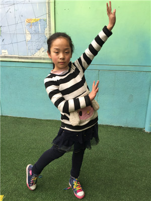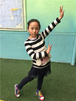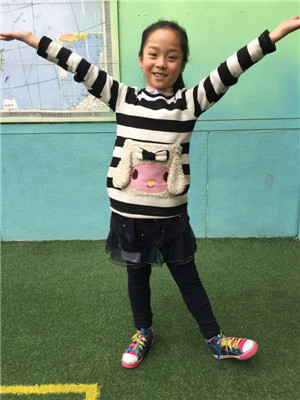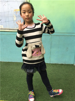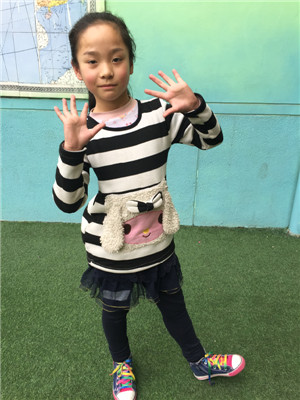 她今年9岁了,她的眼睛大大的,鼻子小小的,嘴巴小小的,他的头发长长的,脸圆圆的。