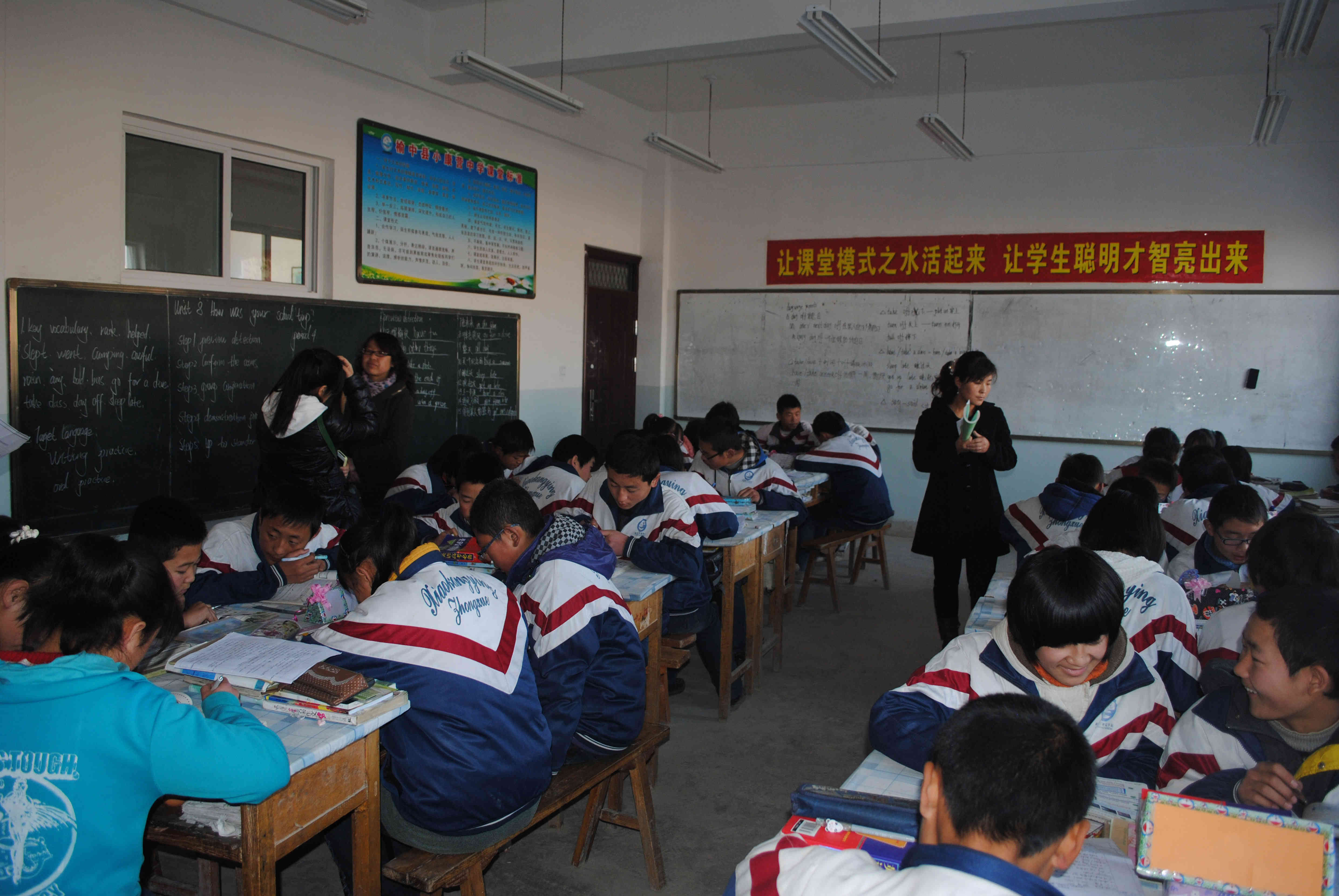 同学们都显得无精打采。首先,张老师给我们讲语法。老师并没有要求我们全背下来,而是让同学们自己造句,分析例题来记住这些语法。这时,同学们便觉得越来越有趣了。接下来,老师引导我们进入了自主学习,小组内进行编对话,然后再全班面前展示,发言积极和声音洪亮的小组将会有更多的学习收获。同学们被这一系列的课堂活动给吸引了,学习的劲头越来越强。