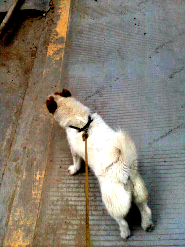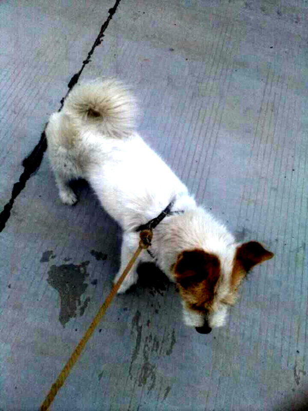 每次放学回家,我都会带它去散步,瞧,我又带它去跑步了。它每次去散步都兴高采烈的,一会儿东瞅瞅,一会儿西看看,感觉很喜欢这美丽的大自然呢!