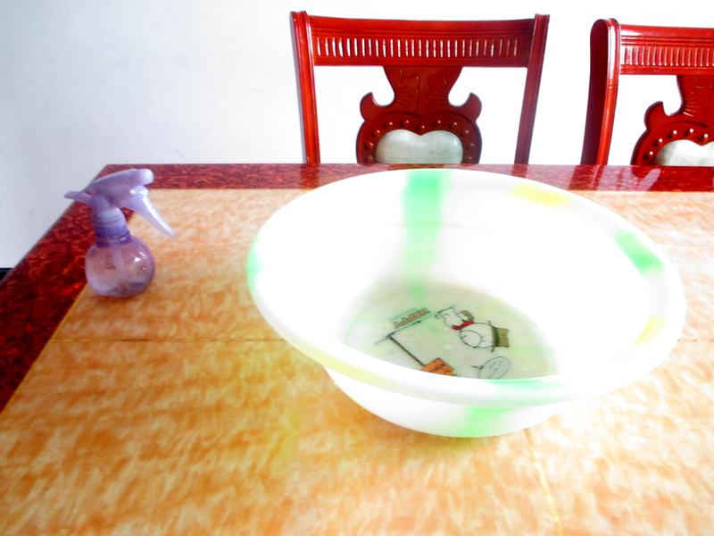 第一回合,先下手为强,由我展开攻击,哥哥防守。我小心翼翼的靠近哥哥的身前,在他用水盆挡住视线的刹那,说时迟那时快,第一枪已发射出去,果然姜还是老的辣,被那水盆给挡住了。然后哥哥退后到门框后面,我慢慢的向门口逼近,蹲下身子,正当我想抬头时,有一种被偷袭的感觉,我凭着本能,将水盆举过头顶,躲过了一劫,这一回合以平局结束。