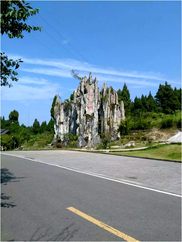 沿着笔直的高速路前进,不多久,蔚蓝的天空升起来一轮带着些许夏日热气的红日,道路的两旁长满了茂密植被。就这样,在光与影的美丽交错下,经过两个小时的高速路后,我们只剩下一条通往峡谷上方景区入口的羊肠小道了。虽然由于道路狭窄,大家都为开车的哥哥捏了一把汗,但是重庆地区特有的高山峡谷地貌却让大家不得不感叹祖国的大好河山。渐渐向山顶驶去,山风徐徐吹来,在日光的照射下,连绵起伏的山峰越发显得青翠欲滴。