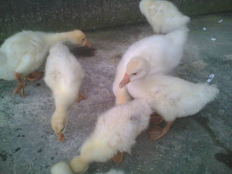 鸡过了就是小鹅鸭,小鹅鸭小时候很可爱,黄绒绒的毛发,小小的眼睛,肉嘟嘟的身体。 这些小鹅鸭并不怕我,从小就高高在上,长大了可霸道,记得爸爸刚买回来的大鹅鸭经常欺负别的鸭子,我也被咬了许多次。我那忠诚的大黑狗实在看不下去,要与鹅鸭一决高大,没过几分钟,我家那大黑狗就输得一败涂地。所以我要在鹅鸭小的时候好好照护它,增加感情,这样它长大了就不会咬我了。