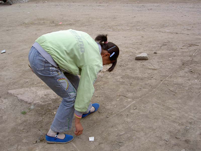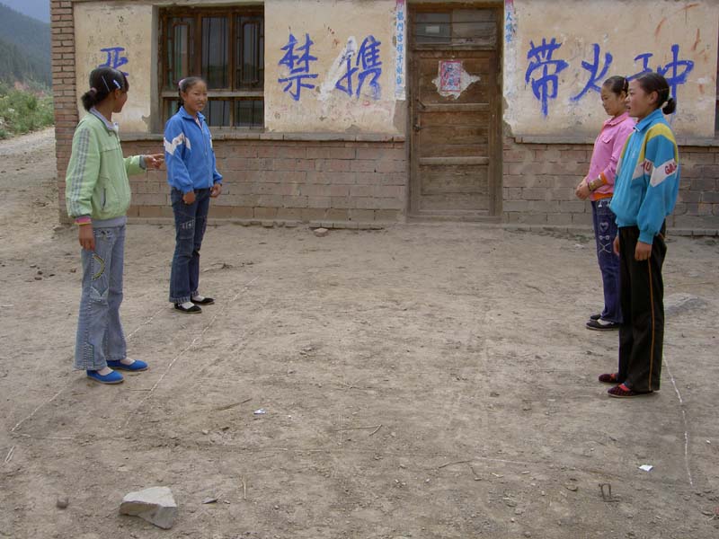 言归正转,我们这儿小朋友爱玩的游戏有很多,我向大家介绍我们最喜欢玩的一种----跳八方。
