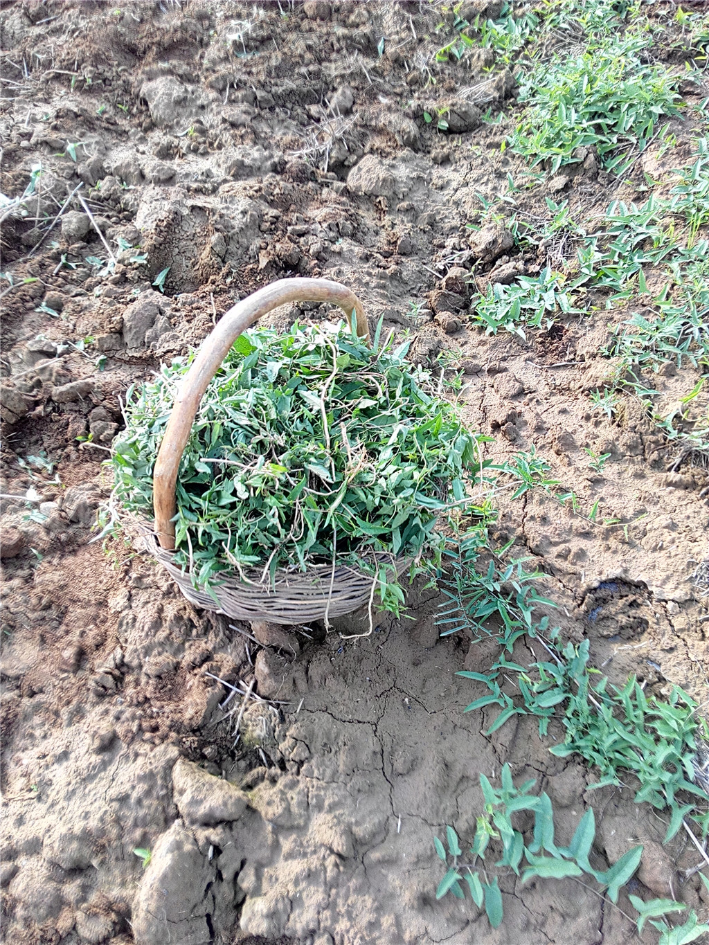 我们开始拔草,父亲告诉我,拔打碗花要尽量连根拔起,不能只拔掉地面上的枝叶,减少它再生的机会。前几天下了几天的连阴雨,地里湿度大,地比较松软,拔草就容易连根拔起。如果地里比较干,还得用撅头挖出草根。刚开始拔草,我还觉得新鲜,不一会儿就腰酸背痛受不了。我先蹲在地里拔草,不一会儿就腿又麻又酸,我只好站起来弯着腰拔草,不一会儿腰又酸痛的不得了。真是蹲也不行,弯腰也不行。拔掉的草还不能扔在地里,防止它死灰复燃,用担笼装上提到地头,再用架子车拉到沟里倒掉。