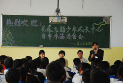 2008年7月21日至27日,台湾花莲飞扬少年成长中心一行15人和台中水湳传爱基金一行2人共计17人在总领队萧师母的带领下再次走访和关怀青海会员学校,这是花莲飞扬少年成长中心第五次走访和关怀青海会员学校。此次花莲飞扬少年成长中心和台中水湳传爱基金主要走访了青海省大通县青林乡中心学校、大通县西山中学、大通县青山中心学校、大通县黄家寨中心学校、湟中县大才初级中学、湟中县丹麻中学、湟源县第三中学、湟源县巴燕中学和大通县石山乡中心学校等9所学校。