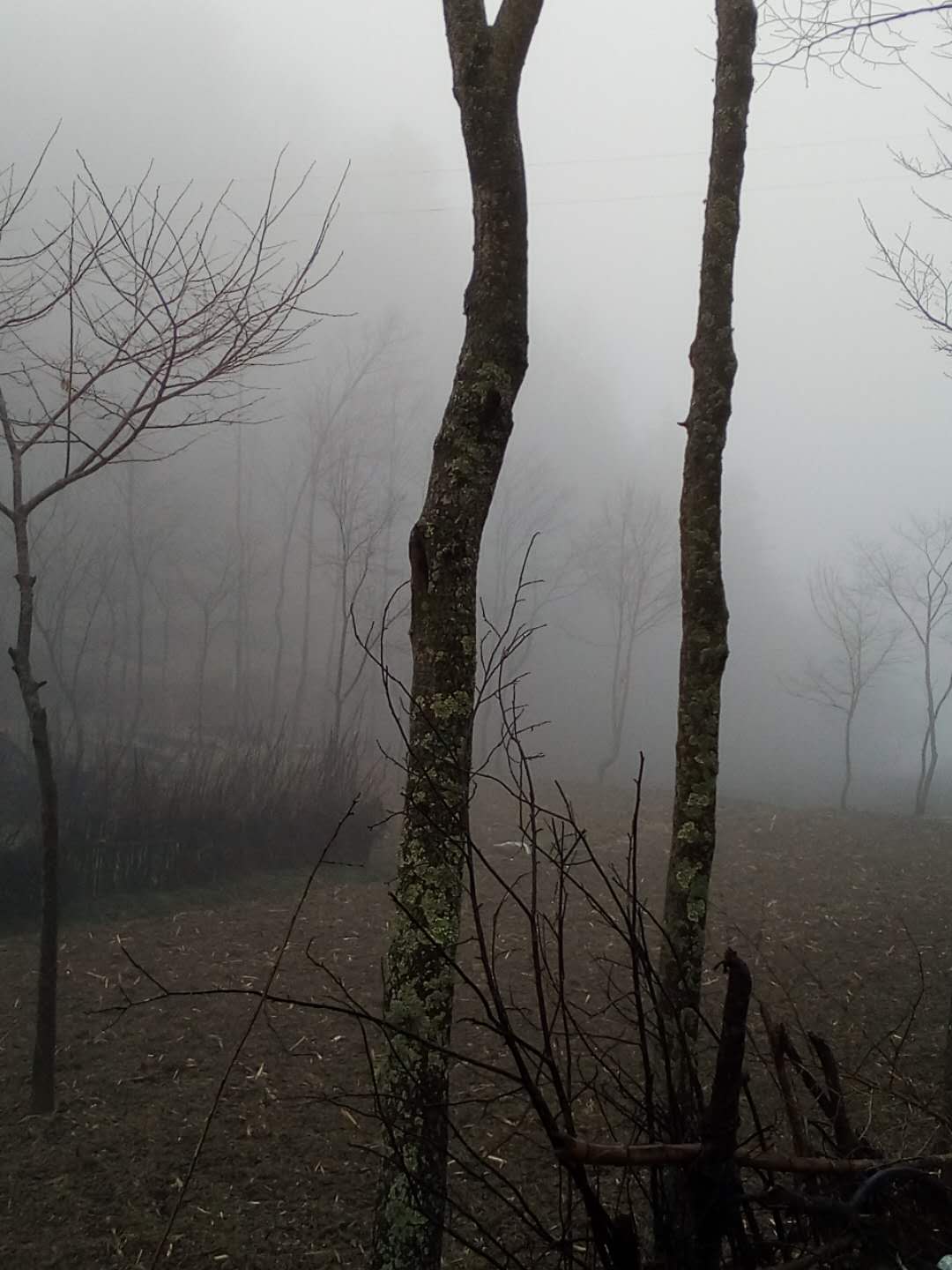 中午,天似乎好了许多,我和三爸拿好工具,准备向山林进发,通往山林的路像一条即将腾飞的巨龙,让我感到窒息,虽然下着雨,天也冷,但走在这"龙背"上让我已满头大汗,大约行了二三十分钟的路程,我和三爸就到了达目的地。