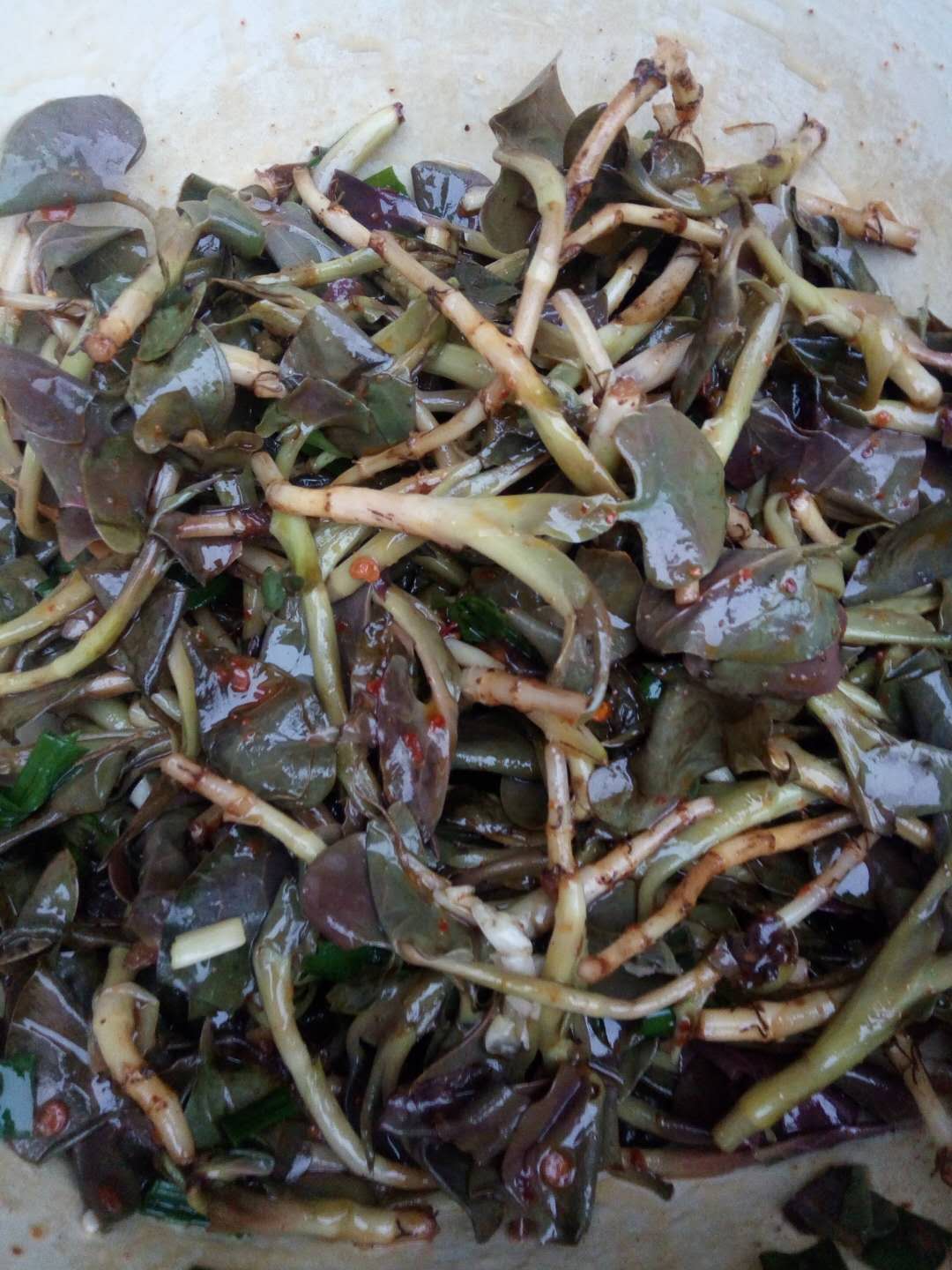 今天收获可真不小,回到家我把鱼腥草择干净了,又清洗了三遍,鱼腥草凉拌的做法很简单:用开水大约烫十秒,直到变色,捞出来就可以调调料了。把蒜切成细末放入,倒入熟油,在调上一些盐、醋、辣椒等调料,搅拌均匀,就可以入口了。