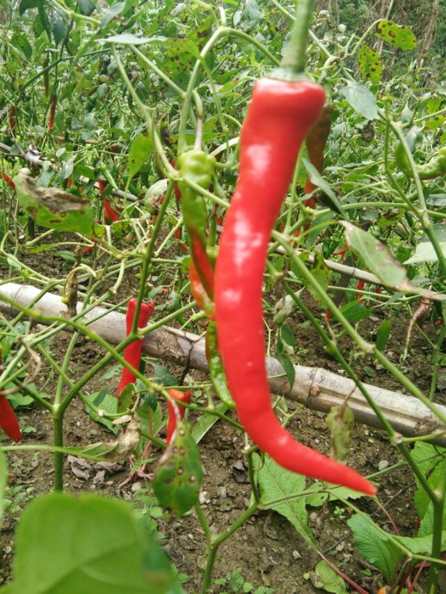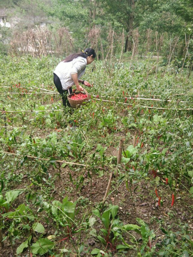 随着姐姐来到了菜地,还没等姐姐反应过来我就高兴的一蹦一跳地跑在了辣椒地的最中间,看着眼前数不胜数的辣椒。姐姐说要摘红的,咦!我看着这不是有青的,也有红的吗?为什么偏要摘红的呢?我不解的问。姐姐说现在正是摘红辣椒的时候,这个时候,红辣椒可以晒干挂起来,备用之时,可以当做做饭的材料。我知道了理由看着这些红红的辣椒狠不得一口气都把它摘完。但是菜园子太大,袋子拿着也不够用,所以姐姐说今天先摘一半。我看着这些辣椒,他们有的抬头仰望,出一副高傲,若无其事的样子,让人一看都想发笑;有的低着头,羞答答的样子,就像快要出嫁的新娘,可有趣了!有的上有绿叶,下有红彤彤的辣椒端端正正的靠在菜杆上,鲜明的色彩,真是辣椒中的仙子,也正有了那句话:红花要有绿叶配才完美!