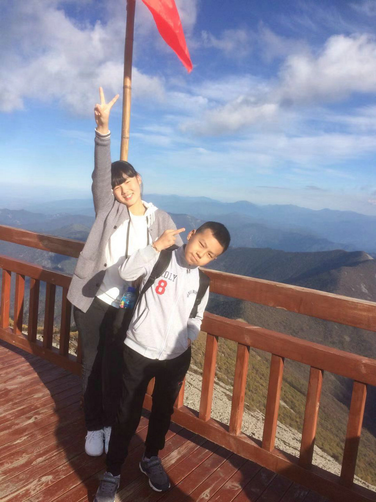 吃饱饭后,继续爬山,突然很想上厕所,就在附近的地方找了一个卫生间,但是,让人惊奇的是:这间厕所是悬空的,只是几根木头支撑着,我还是壮着胆去了,在卫生间里面,居然那么干净。从卫生间出来我们就继续爬山,大概走了两百米,忽然觉得胸闷气短,爸爸说这是高原反应,过了一会妈妈和姐姐也不舒服,走了三五米的距离,就气短胸闷的厉害,爸爸就说不能再往前走了,不然身体会受不了的,所以我们只好原路返回,走到半山腰我们坐索道下山的,上山需要大概三个小时,可坐索道下山只需要18分钟就下山了。