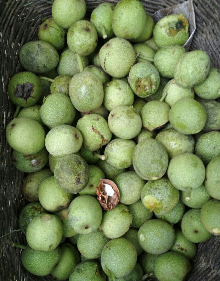 妈妈和同行的阿姨准备齐棍子和袋子,我们的队伍就出发了,向着山顶的目的地进军。可是还没有走多远,我已经累得气喘吁吁,心中打起了退堂鼓。但男子汉的自尊鼓励我不能望“核”生叹。经过将近半个小时的长途跋涉,我们终于看见一棵高大的核桃树,我兴奋极了。手提棍子的阿姨立刻挥舞着棍子敲打起来,只见既圆又大的核桃如冰雹般落下来,我紧随砸下来的核桃东奔西走,不一会儿就捡了满满的一袋子,可惜树上的核桃已经被扫荡一空。