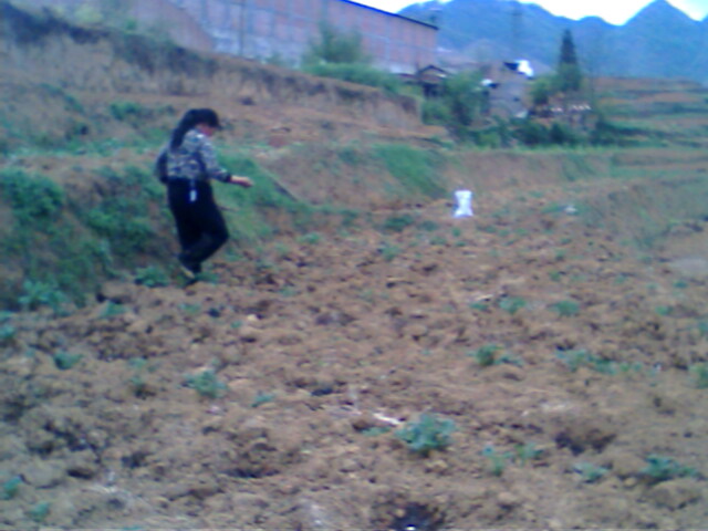 看这位正在播种的农家大婶,由于水分充足,为了不错过这么好的时节.急忙的的把种子种在地里,因为只有这样种子才能在地里面充分的吸收水分,将来才能长出高大的枝干.
