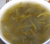 浆水面最独特的就是那一口酸溜溜的浆水。不同地方用不同方法制作出来的浆水味道自然不同。但大多都是将煮完面条的面汤倒入陶盆里,待水温降下来时,放入煮熟的包菜、大白菜、芹菜等叶子,然后盖上盖子,密封后放置在在阴凉处,不出三四天,酸溜溜的浆水就做好了。但在发酵期间,一直要用干净的擀面杖均匀搅拌,保证充分的交融。如果出现白色的浮沫,说明浆水已经失败了。