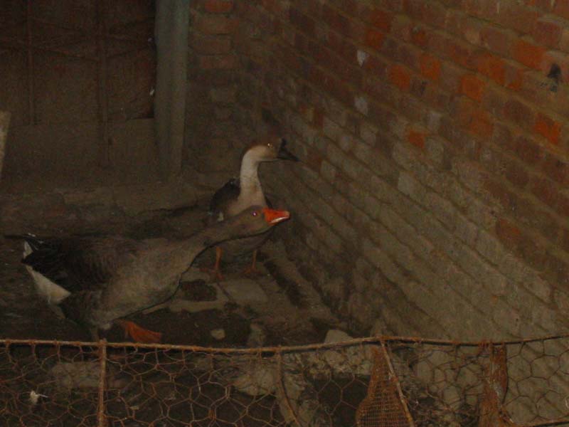 我们家脾气最坏的灰雁和鹅,这俩个家伙总是看我不顺眼,我已去院子里拿东西,它们两个就会拧我,其实一点也不疼,因为我十分喜欢它们。
