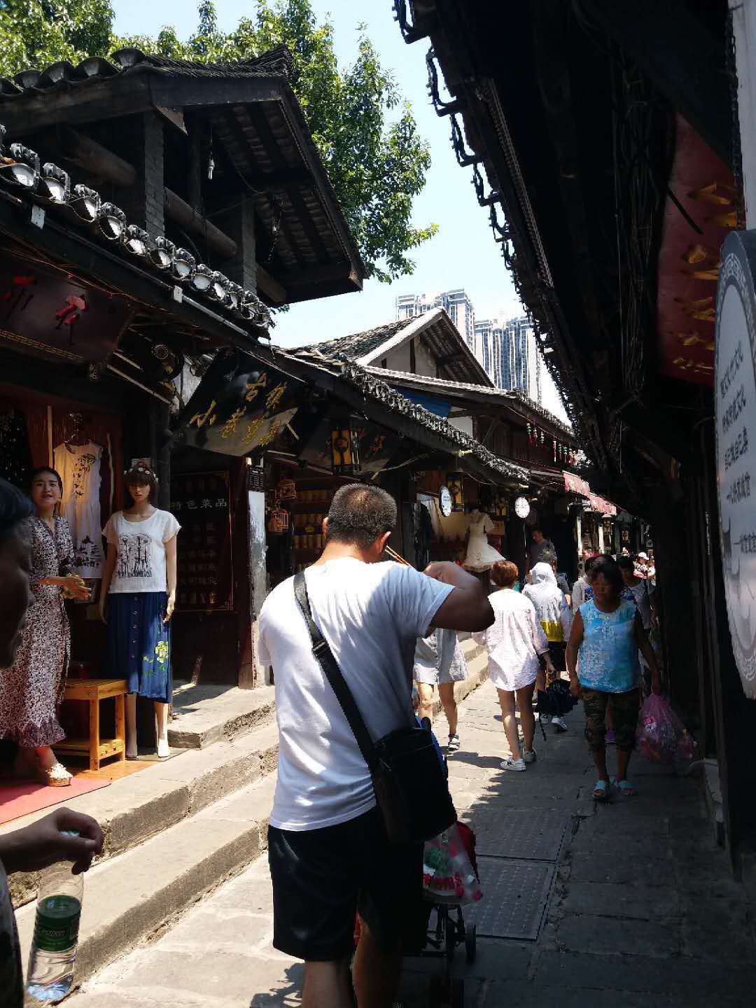 然后我们又去了古镇磁器口,那里的人依然多,川流不息。整个古镇都是小吃,看的我眼花缭乱,口齿生津。还有民国时期的茶楼和戏园子让我仿佛回到了民国时期。
