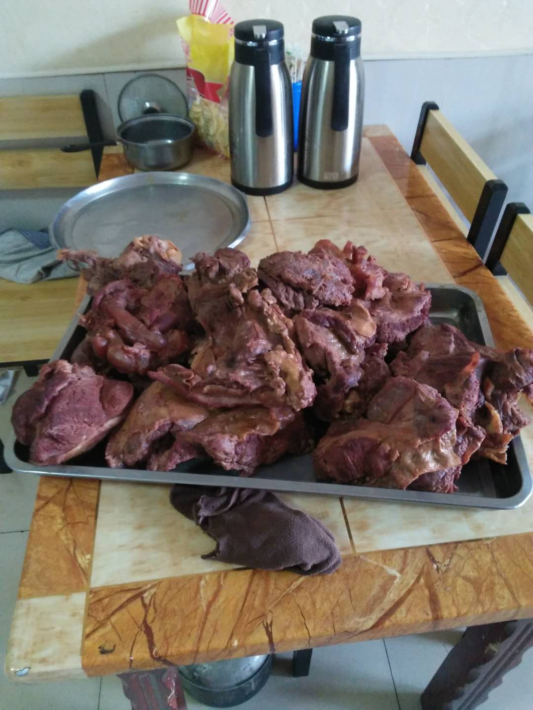 我的家乡金崖坐落在中国北部的黄土高原,这儿没有南方那么的山清水秀,却也有自己的独特风味儿。作为一名吃货,我对家乡的美味儿很是满意,一种种食品包含着一份份浓情。首先要说的就是所有美味中几乎不可缺少的一样配料——大蒜了。家乡的大蒜多是红皮蒜,它不像白蒜那么的柔情,它可算得上是一个"辣妹子"哩,一入口它就直入你的舌根,接着一股子辣味儿从头辣到尾,让人浑身冒出一阵虚汗,打一个机灵,那个爽啊!但是吃大蒜味儿十足,"后味儿"也十足啊!如果吃完大蒜你敢不刷牙,估计这阵时间你也就没朋友了吧!接着要说的就是我们金崖的酿皮子了,南方的凉酿皮子多是吃一些配菜什么的,而我们北方的酿皮子主要吃的是筋骨和调料。金崖酿皮子选用筋骨好的面粉,做出来白里透黄,放上芥末、麻酱、香醋等调料,再放入最主要的"提味剂"大蒜,一碗美味的酿皮就好了。这酿皮中包含着我们北方人特有的风味儿,和那份劳动人民手下的浓情。还有就是金崖的驴肉了,金崖的驴肉可谓是地方最具特色的风味了,一走到金崖十字路口,上左下右大大小小的饭店,招牌菜都是驴肉和驴板肠了。我一向也是不怎么爱吃肉的,特别是肥肉更是不喜欢吃,而这驴肉给我的魅力可就大了。喜欢吃肉的人感觉它有味儿不,不喜欢吃肉的人也不会感觉到一丝腻味儿,可谓是"肉中豪杰"啊!毕竟俗话说得好啊"天上的鹅肉,地下的驴肉"!你肉真的是一种最好的解馋品。
