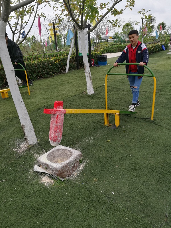 体验完一个项目,我们又去下一个,陆地式障碍闯关、高台滑梯、推石磨,太多的体验项目了,同学们玩得可高兴了。可有点遗憾的是高台滑梯我没有体验过,因为有点害怕,所以不敢去。