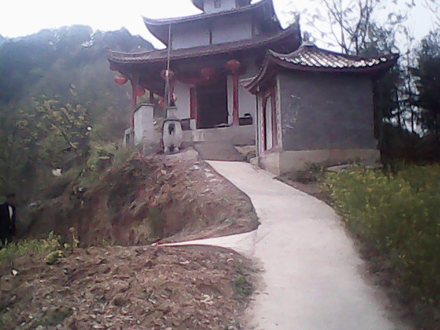 还好本猫经常健身,否则这二郎庙的台阶可是要累死猫的!走了100多阶的台阶,便看到了山门。上面插着个三面彩旗随风飘扬。边上还有一张圆石桌与几个石凳。在往上走,有100多阶台阶。一入眼窗的是一座凉亭和两排绣球花,不过我们来的不是时候。还未到开花的季节,不过已经长出了小花骨朵儿继续向前走几十米。有一座小房子在路边,里面供奉着两座神像,但是具体是谁?本猫也不知道。我们继续往上走,没有了水泥台阶,只有山间小路,周围还有许多不知道的树。我漫不经心地散步时,不知从哪里冒出一只小狗对着我直叫?吓得我窜到主人怀里不敢出来。不过还好的是,山上也没有什么好看的风景,不然本猫就要遗憾终身了。这一天过的可真是惊心动魄啊!