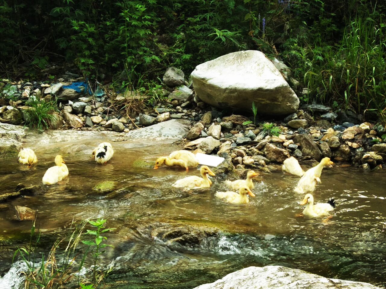 瞧啊!鸭子回来了,不说了,该去喂鸭子喽!