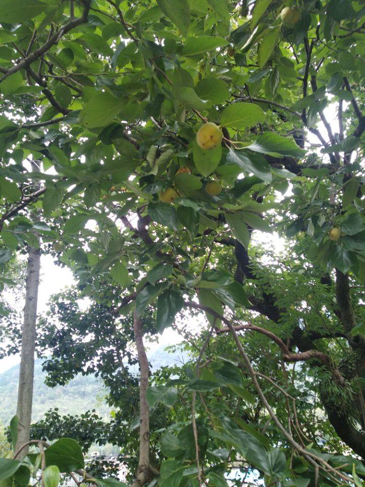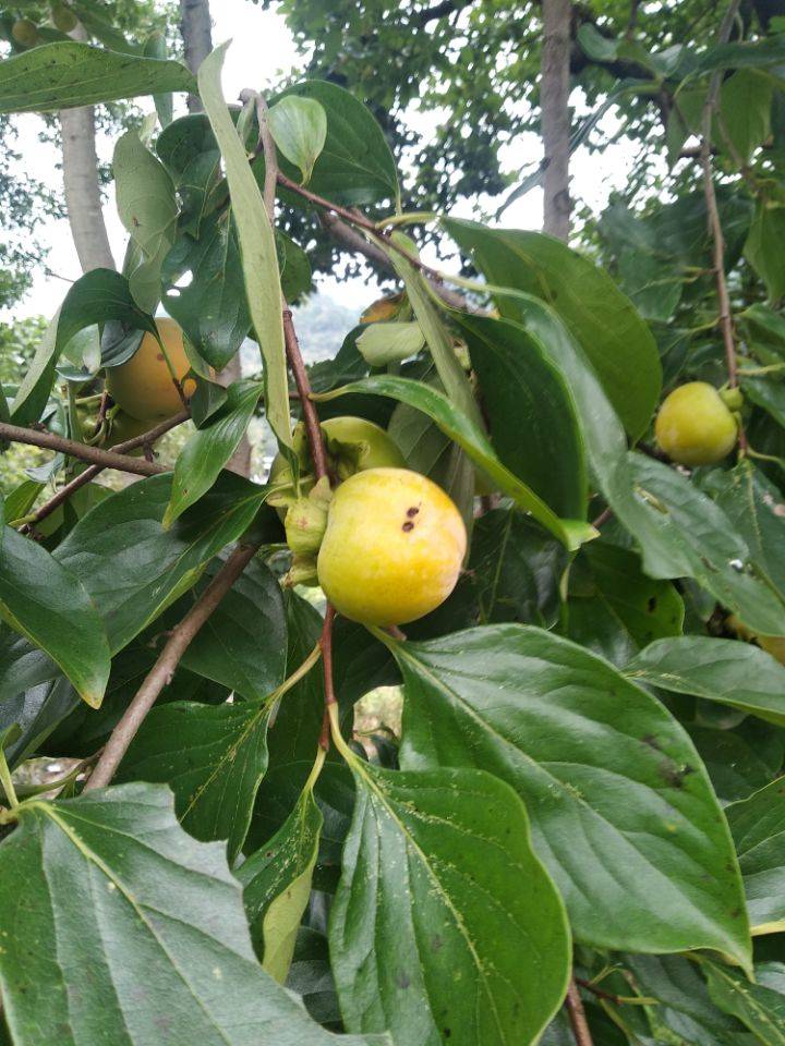 每到闲暇时,村里的人便都去摘柿子。他们有的直接上树去摘,有的用竹子做的网兜去网,有的用树枝做成的插去插,要不了好久,就能收获一背篼柿子。