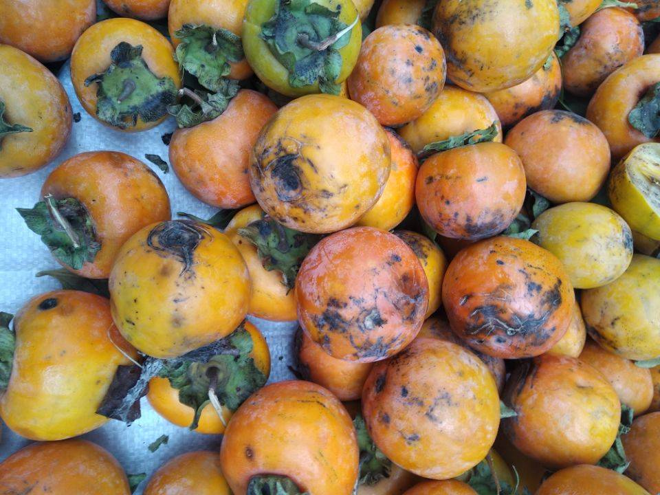 还有些农人把青色的柿子,装在坛子里。用少许白酒把它淋在上面,封上坛盖,过了数日,再把它盖子出来,一股酒香扑鼻而来,这就是美味可口的"酒柿子"。