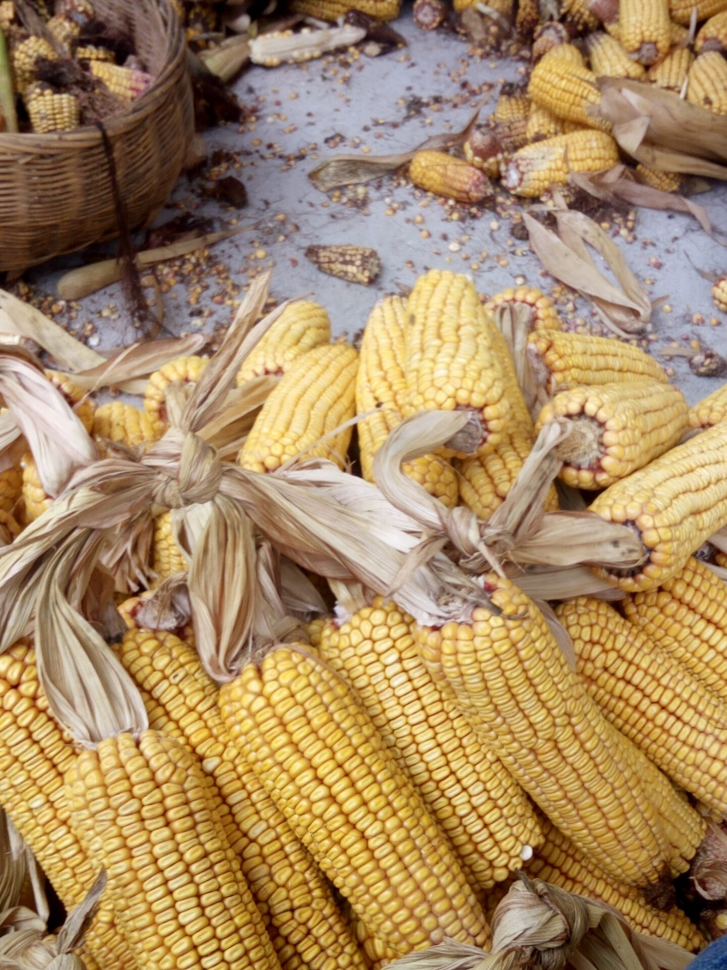 绑的时候先把玉米的包叶留下三两三片,然后再用包叶绑成死结,每四个玉米绑成一个,也可以用两个或三个绑成一个。绑好了之后就可以把玉米搭在房梁上风干了,如果要用的话取下来然后把玉米粒剥下来就可以用了。