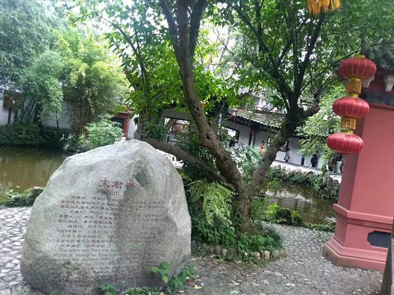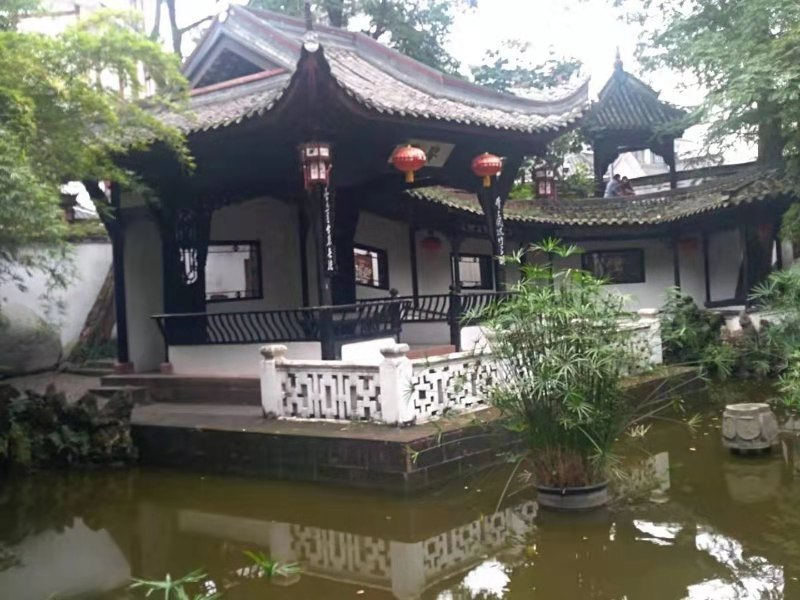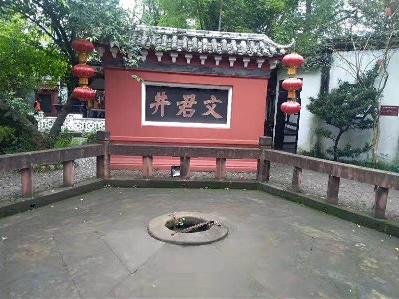 既有"凤求凰"的爱情故事,那有怎少的了文君酒呢。"甜润幽雅,蕴含众香"素来是人们对它的评价,其实文君酒是现今一些酿酒大师酿出来的,只不过刚好有"文君当垆卖酒"的典故,才美其名曰:文君酒。既然当垆卖酒,那么这酒又从何而来呢?据说卓文君当时是用井水来酿酒的,而那口井被保存了下来,也美其名曰:文君井。这口井与别的井与众不同,它甃砌异常,井口径不过二尺,井腹渐宽,如胆瓶然。并且这口井里的水清凉甘甜,很适合酿酒。文君井所在的这片院林是以苏杭庭院风格来修建的川西古院林。院内假山遍布,竹子和各种各样的树木栽种在每个角落,使得整片院棕都笼罩在清雅幽静之中,大大小小的亭子立于池塘边,塘内的鱼儿摆动着它们美丽的鳍,阳光透过池水散落在它们的身上,星星点点。