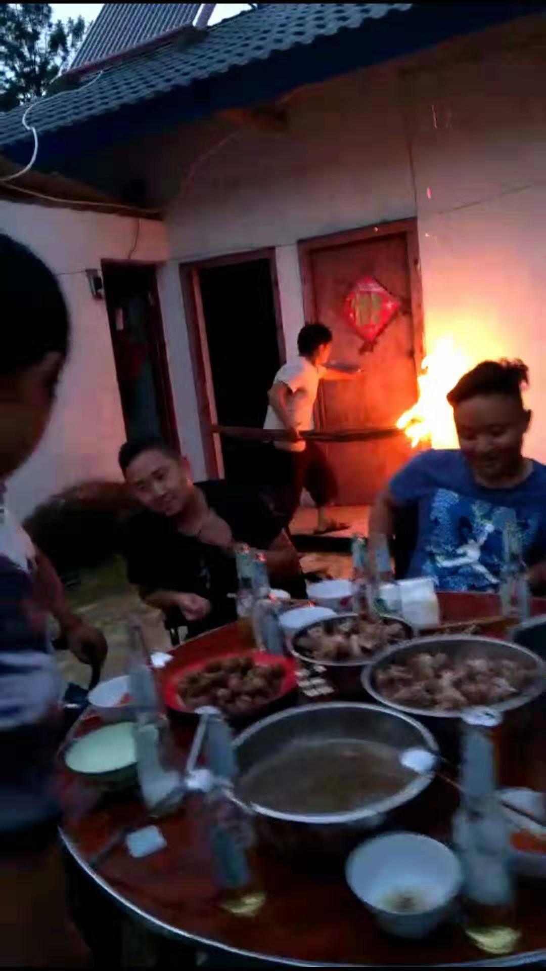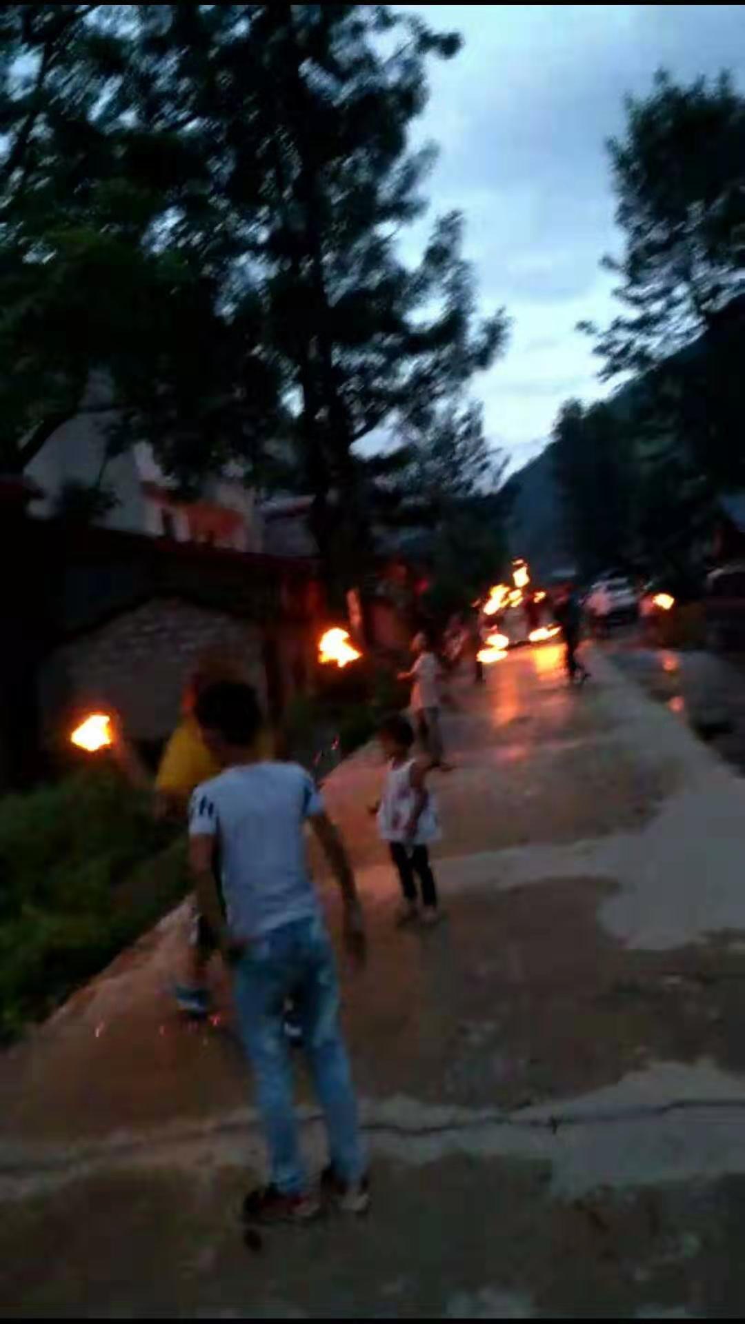 到了晚上八点左右,家家户户都拿出早已准备好的火点把准备点然,点火是有讲究的,必须由家里的长辈来点燃,举起火把在房前屋后里里外外还要到庄稼玉米地里走一圈,仪式完成后,其他的大人小孩才开始拿着火把去引燃。接下来,全寨子的人都会甩着火把不约而同排成长龙,金光闪闪的火把仿佛天上洒落在人间的星星夺目而耀眼!