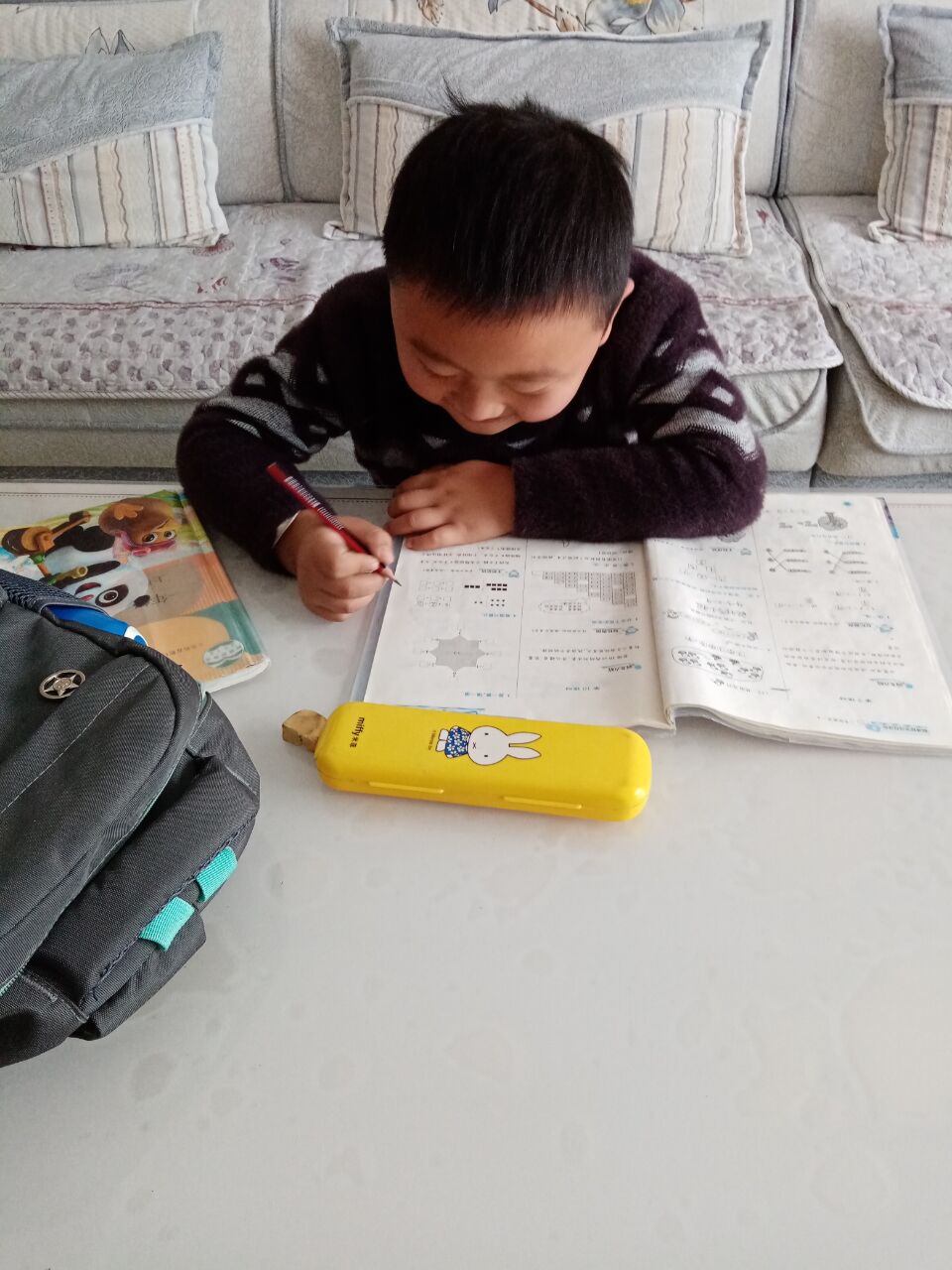 就比如说写作业这一关,他比谁都积极,老师布置的,都非常认真的完成,但老师布置以外的,就被扔到云霄以外去了,连看都不看一眼,他除了写作业时很听话,其他都很淘气,真令人头疼。