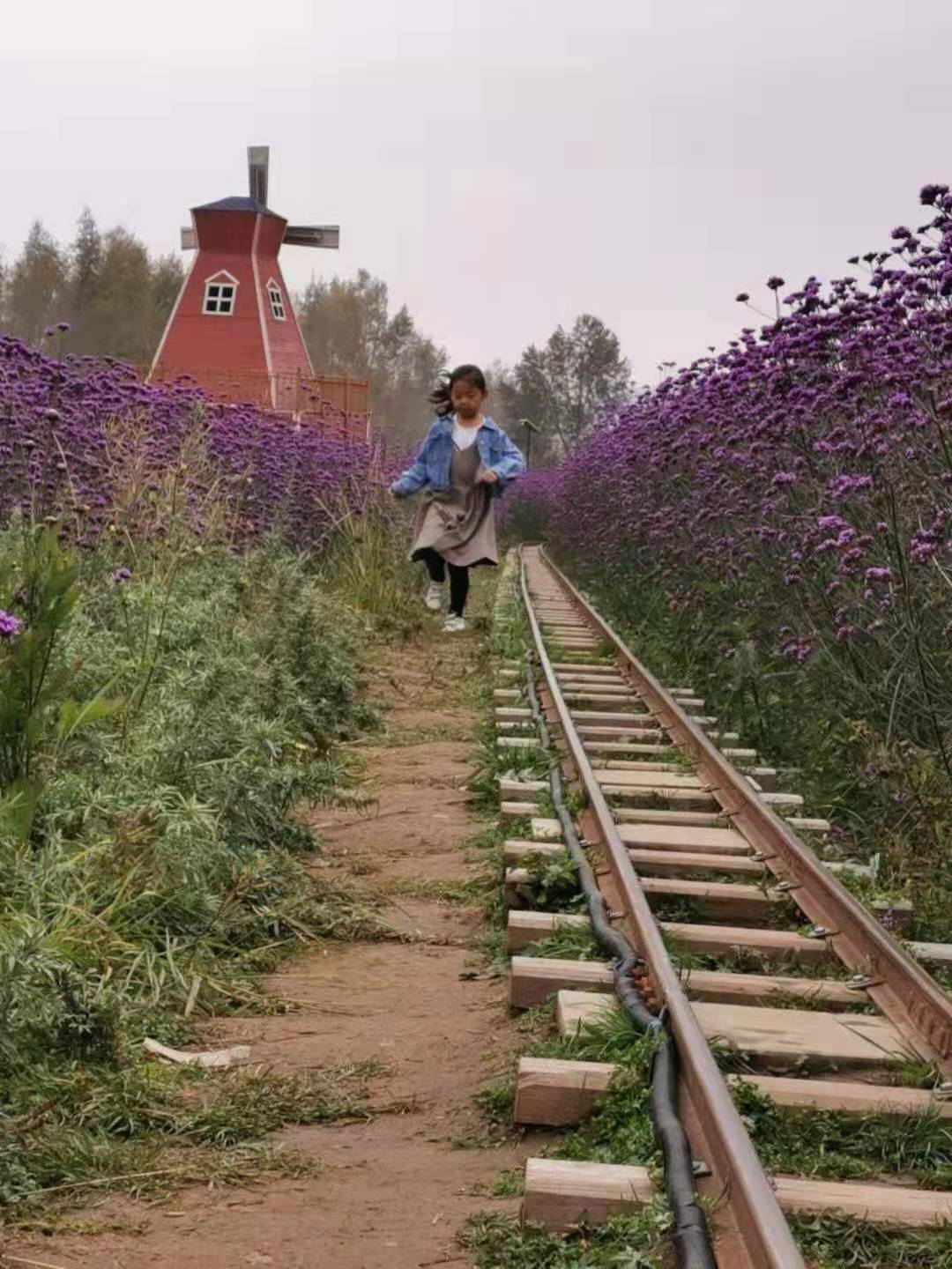 我们走了一会儿,就看见了五颜六色的花田。有这么多漂亮的花,我忍不住让爸爸赶紧给我拍几张照片做留念。