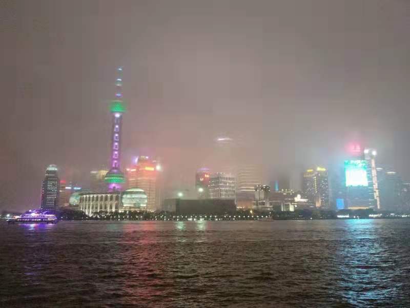 傍晚时分,我们漫步到了有名的外滩,烟雨蒙蒙中隔岸相望,陆家嘴金融中心好像带着神秘的面纱映入我们的眼帘,朦胧中我看到了著名的东方明珠,还有上海滩"厨房三件套"。说起三件套我和姐姐还特地查了资料,原来上海环球金融中心是开瓶器,金茂大厦是注射器,上海中心大厦是打蛋器,它们就像三兄弟矗立在那里。看着它们一个比一个高,一个比一个形状独特,我内心感叹着建筑师们真伟大。沿着外滩继续游览,我们到了人民英雄纪念碑,它是为了缅怀自1840年以来为解放上海而献出生命的革命先烈而建成的。仰望塔顶,一根挺拔的线条垂直向上,好像人民不屈的精神凝聚成的。走着走着,忽然下棋了瓢泼大雨,我们只能快速离开外滩,而夜幕中的外滩夜景却更加迷人,霓虹灯亮起,巨大的邮轮穿着五彩的灯光外衣缓缓行驶在江面上,与五彩灯光下的城市汇成一体,格外美丽,我们只能匆匆拍了照片,让这美景定格。第二天一早,我们登上了金茂大厦,它有世界上最快的电梯:每秒9米。怀着激动的心,我们走进了这台电梯,电梯上升时,我们都感到了身体在向下坠,不一会儿,电梯就到了,我感觉像飞上来的一般。到了顶层,对面就是东方明珠,我好像和它近在咫尺,一眼望下去,上海景色尽收眼底,头一天看到的高大建筑都变矮小了,黄浦江蜿蜒入海,眼下一片现代化大都市的景象让我感受万千。到了中午,我们离开了上海,去乘坐到杭州的高铁,而我的心还在上海这座城市中停留着。