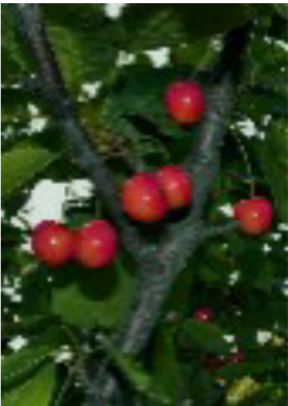 那被雨水滋润的咖啡色土地上长出了一棵棵樱桃树,结实的棕色树枝,向四面八方生长,上面有锯齿,如果你悄悄把树拨开,就会发现里面红红的小樱桃像一个个害羞的小姑娘,红着脸,躲在树叶后面不肯出来的红红的小脸蛋。