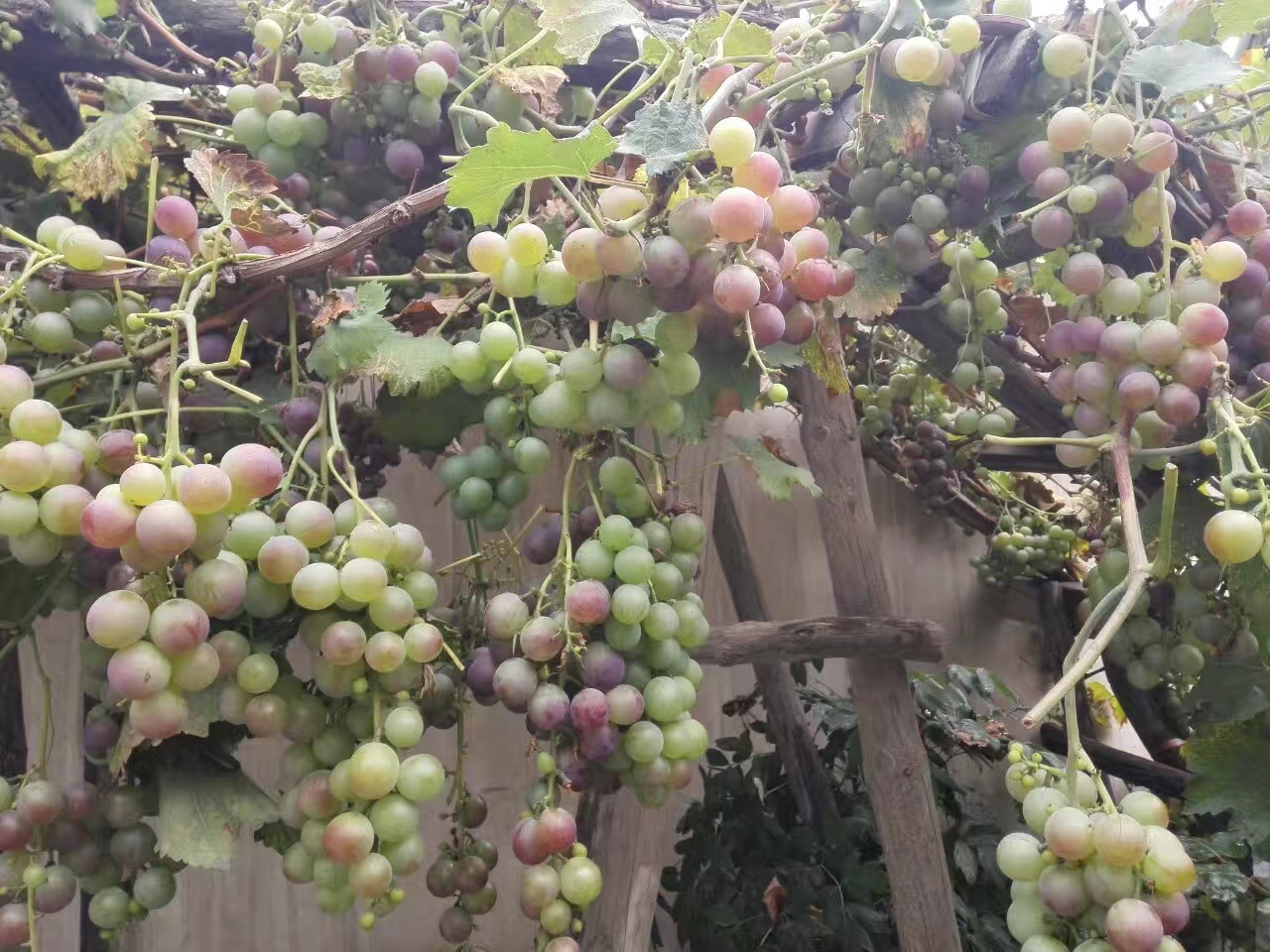 秋天来了,我最喜欢的葡萄成熟了。一大串一大串的葡萄挂在葡萄架上,有紫色的葡萄,绿色的葡萄,还有一些紫红色的葡萄,五光十色,美丽极了。等他一成熟,我就摘下最大的把它吃掉。