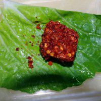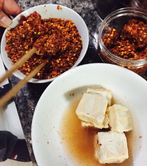 第二种做法就比较简单了。直接把切块的豆腐轻微的煮一下,在煮的时候放少量的盐,然后放在稀辣子里面泡几天就可以吃了。你也可以准备一些青菜叶子,把煮好的豆腐裹一层青菜放在稀辣籽里面十天左右,那个叶子味道好极了。