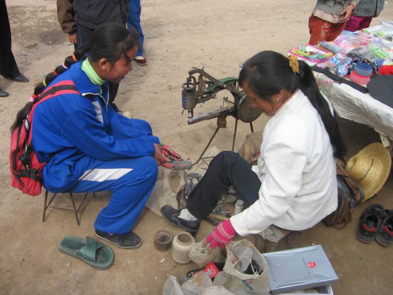 我又问:“多少钱”,阿姨说:“学生不要钱。” 这位阿姨,她补一双鞋只要几毛钱,就能让两个孩子念书,我十分敬佩她!