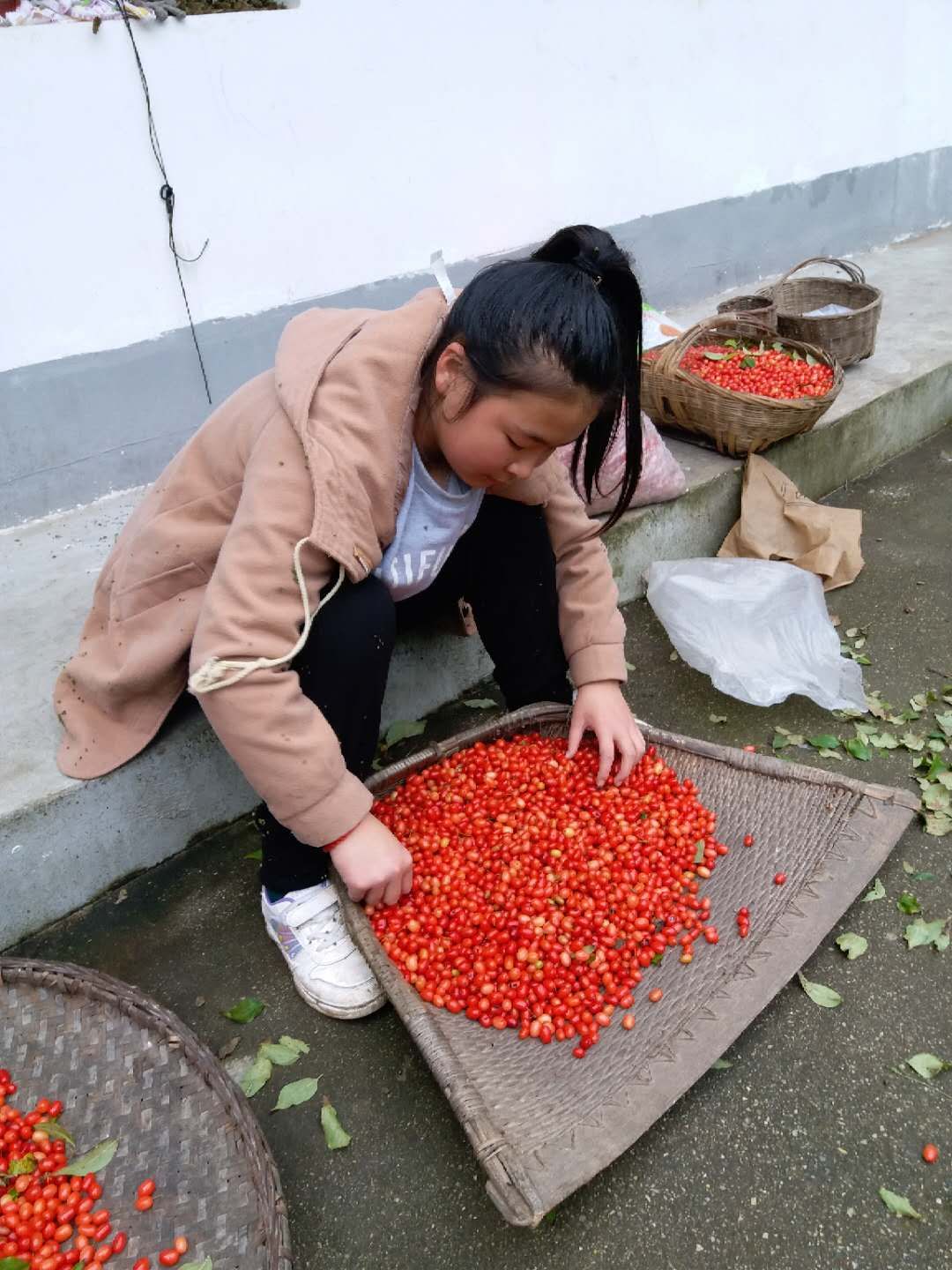 盼望着,盼望着,国庆节到了。今天,天气阴,不算太差了,我们要回老家了,我激动的小心脏都快蹦出来了。 一路上,我做在车里激动的左顾右盼,不一会窗外的景色让我眼花缭乱,头晕目眩,妈妈看我快吐了,便把车窗打开,一瞬间我的头立刻清醒了过来,不在晕了。随着一路的景色我们最终到达了老家,看到爷爷奶奶在辛勤的劳作,我便不禁的想我能为他们做些什么。我走过去问爷爷,爷爷说在咱一片枣皮林,让我和妈妈一起去,因为爷爷奶奶的腰腿不好,所以摘枣皮的认务便"托付"给了我和妈妈。 枣皮是一种药材,在略阳一带长称为枣皮,枣皮,又名药枣,是落叶小乔木,春天,树开始青葱翠绿,绽放黄色的小花,到了夏天,树上已经变成了一点点大的小青果,到了秋天枣皮已是红红的了,他有枸杞一般大小,和枸杞极为相似,颜色也相同。