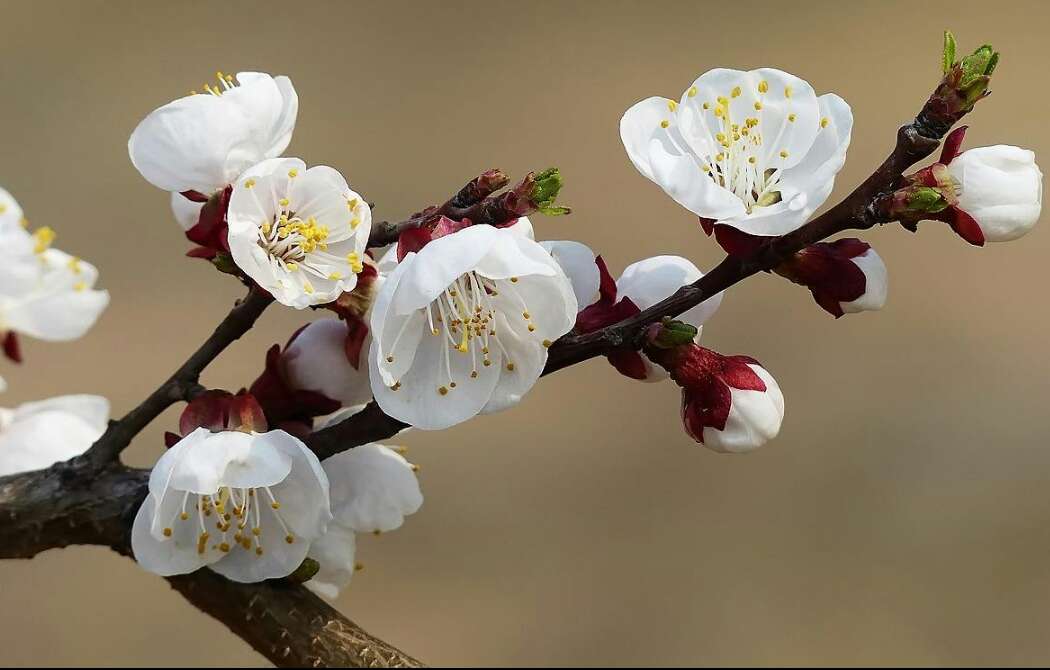 杏花远看一片雪,近看模样多多乱你眼"这句话描写了杏花近看与远看的模样。你看!杏花在后院里远看像一片银白的世界,就像那一片下了一场洁白的雪一样,让人眼花缭乱,那长两米的粗壮的树干,上面的枝条呈伞状,放射地向上伸长。不止远看杏花美,近看也别有一番滋味。颜色多多,有白中带粉的,有粉中带红的,尤其是杏花中间的花蕊是金黄金黄的,很是引人注目呢!