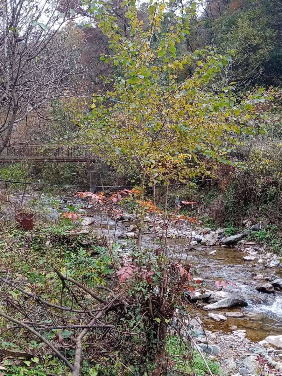 在山腰,一排高大的树木立起上围,像几位将军战,用生命保卫者属于他们的领地,树叶从树上飘下来,像一只只美丽的蝴蝶,它们好像与同伴商量好似的,它们决定与秋风姐姐一起飞舞,跳迷人的舞姿,它们呀!落在小河妹妹的背上,想要一同与小何妹妹游览这朴实而又自然的乡村美景,要是在几年前,那我们家可真的算得上是小桥流水人家了。