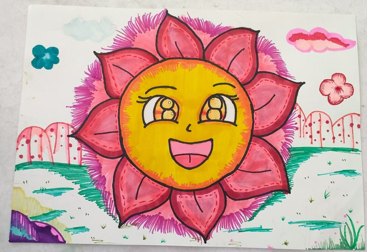 我绘画的太阳,在太阳上画上眼睛、鼻子和嘴巴,使其看起来像一个快乐的笑脸。这可以增加绘画的趣味性,他通过用红色、橙色和黄色等多种颜色,使太阳看起来更加生动和多彩。他通过太阳的形象来传达快乐、温暖和希望等情感,使作品充满了生命力和感染力。