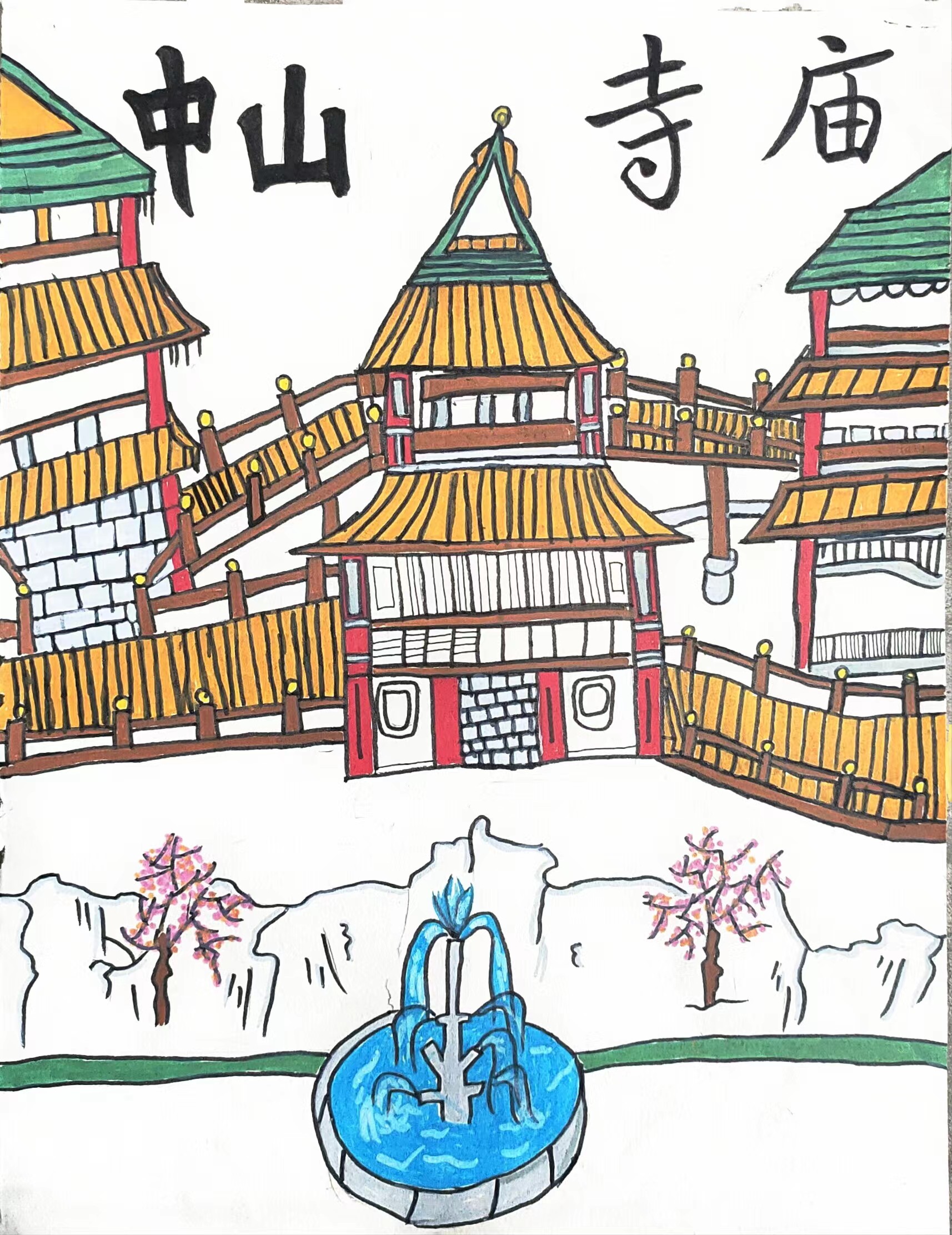 中山古镇的寺庙,它有着金光的屋顶,还有24小时无喷泉,门前有桃树,假山……,这些房子有着几百年的历史,今日这几座寺庙仍然开放在中山古镇,里面还有很多可以的参观的,有和尚在里面管理,打坐,念经、打扫卫生……,欢迎大家前来游玩