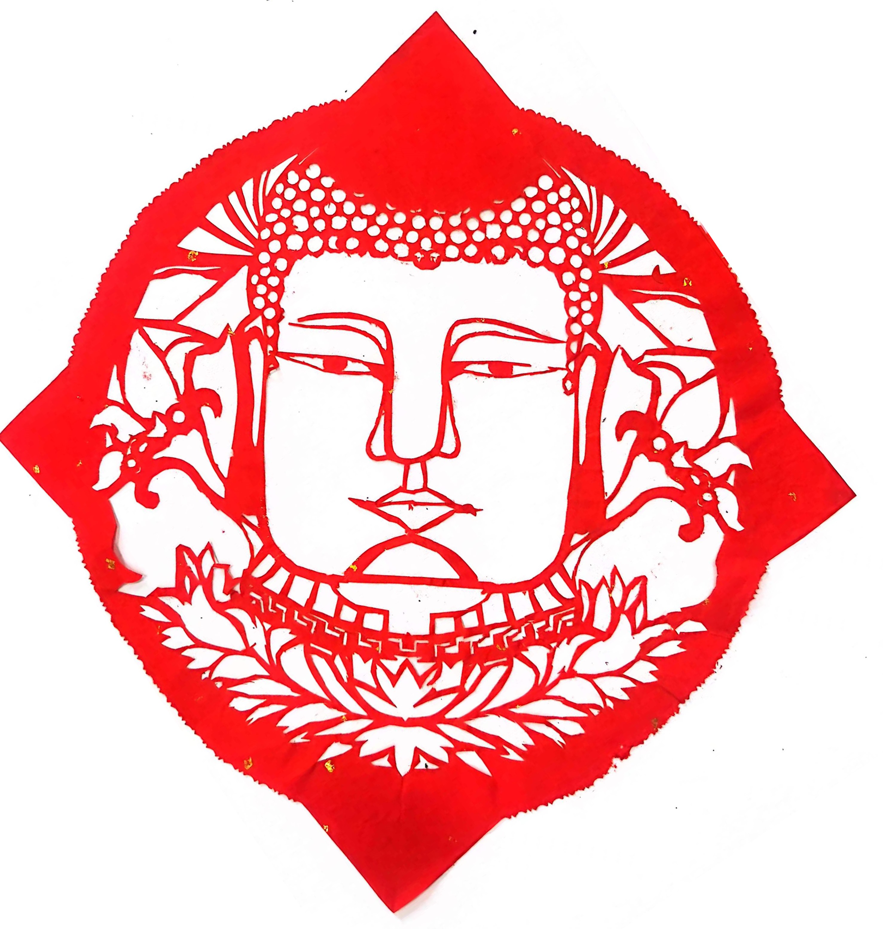 乐山大佛,,又名凌云大佛,全称为“嘉州凌云寺大弥勒石像”,位于四川省乐山市南岷江东岸凌云寺侧,濒大渡河、青衣江和岷江三江汇流处。乐山大佛是中国古代劳动人民智慧的结晶,是世界文化史上的奇迹。乐山大佛头与山齐,头高14.7米、宽10米,头有发髻,耳长7米,依山凿成临江危坐,神势肃穆,大气磅礴。我的剪纸作品是根据乐山大佛的头部进行创作的,这也是我对乐山旅游印象最深的一处。