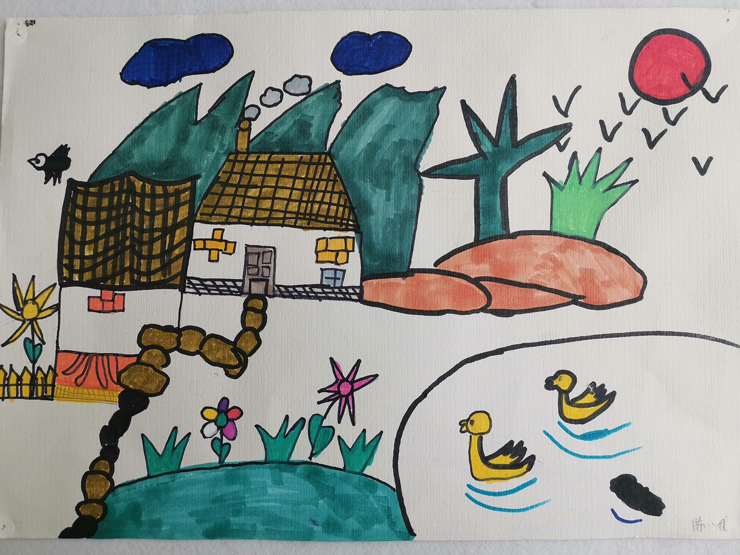 我的家乡在一个小山村,这里比较偏僻,经济来源不好,所以年轻力壮的大人都出去打工,剩下照顾老人、小孩的妇女和其他一些老人,他们在家料理完家务、侍弄好菜地之后,闲暇的时候,总会聚在一起聊天,有的手上也不闲着。