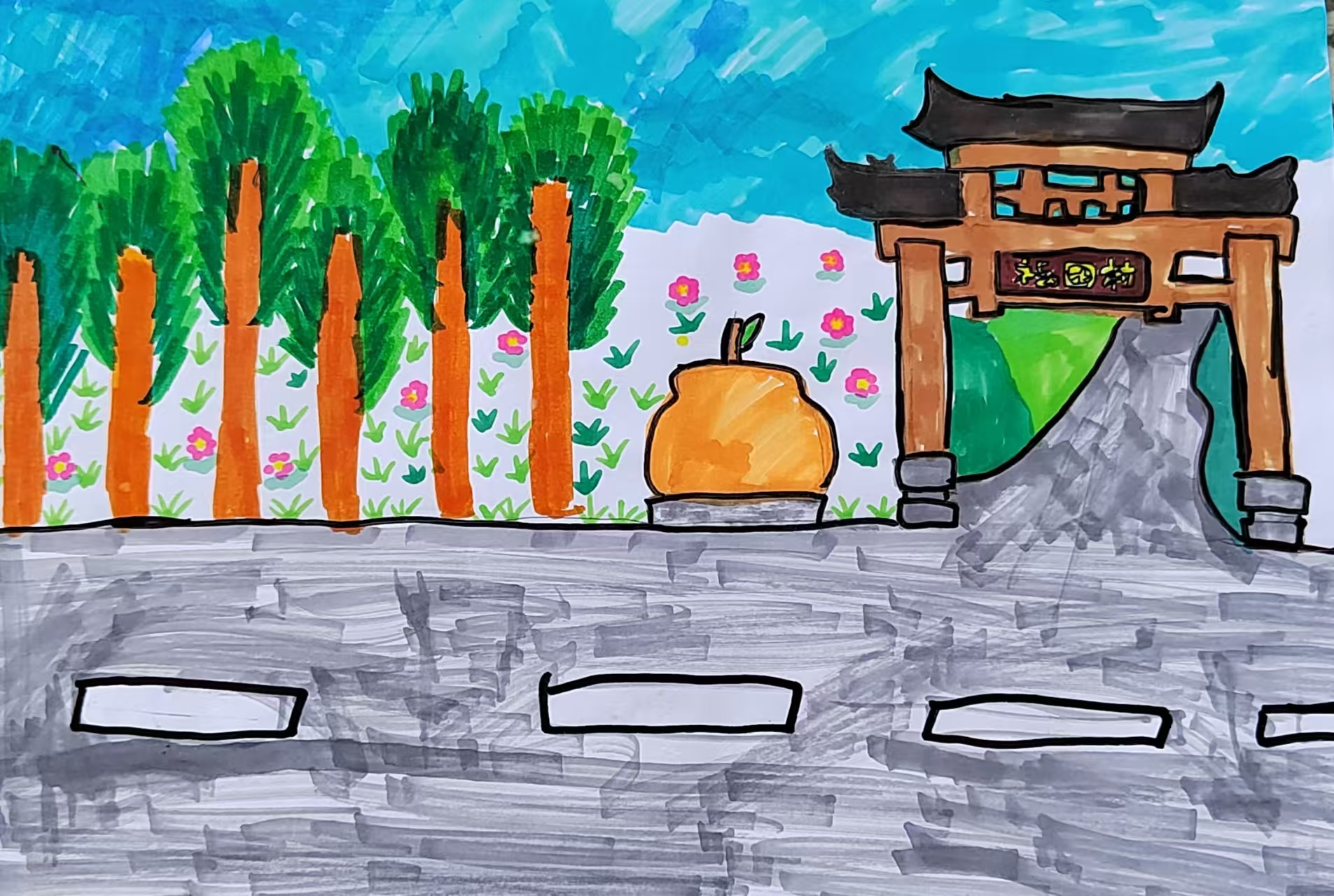 我的家在福田村,离学校大约有2千米的路程。早上,我背着书包去上学,走在路上,空中自由翱翔的小鸟在为我歌唱,高大的树木在向我招手,树下的小草在风中翩翩起舞,远处稻田里的稻子熟了,散发出一阵阵稻香,令人心旷神怡。