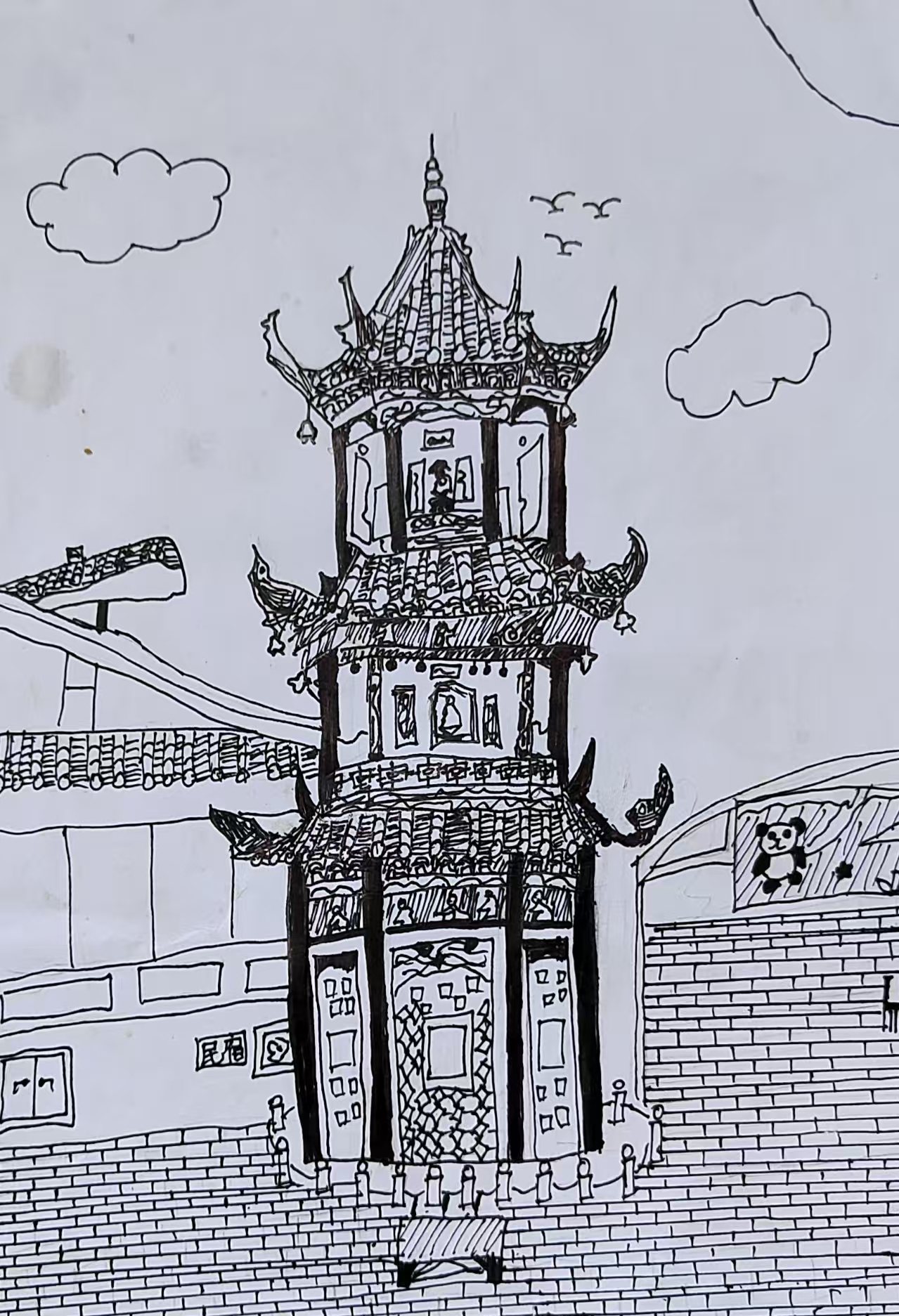 西来古镇是我的家乡,这是一个千年古镇,古镇上有一座古塔——文峰塔。它是古镇上的著名景点之一,是著名的网红打卡地。它是砖石结构,三级楼阁式,通高13.6米,六角,边长1.6米。在它的正面,浮雕三国演义故事,三英(刘备、关羽、张飞)战吕布,扇形横匾刻"惜字宫"三字。凡是到我们西来古镇旅游的人,这儿是必游之地。