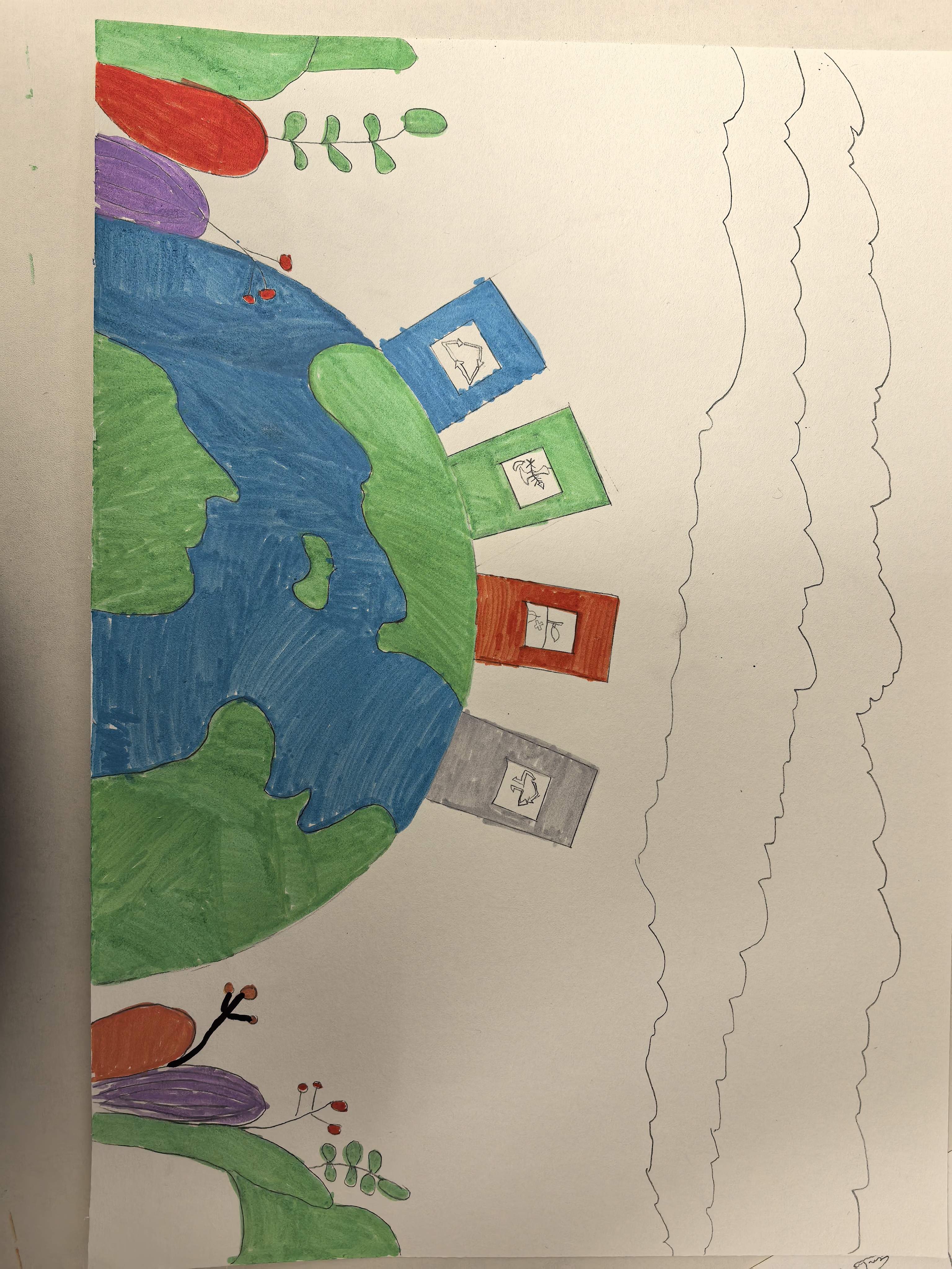生态保护是关乎人类生存与发展的基石。画中的地球、绿植与分类垃圾桶,生动诠释了生态保护的要义。我们应像爱护眼睛一样爱护生态环境,从践行垃圾分类做起,让资源循环利用;从植绿护绿入手,为地球增添生机。每一次节水节电、每一次低碳出行,都是在为生态保护助力。唯有全社会携手,守护生物多样性,筑牢生态屏障,才能让蓝天常驻、碧水长流、绿地永续,让地球家园永远充满活力。