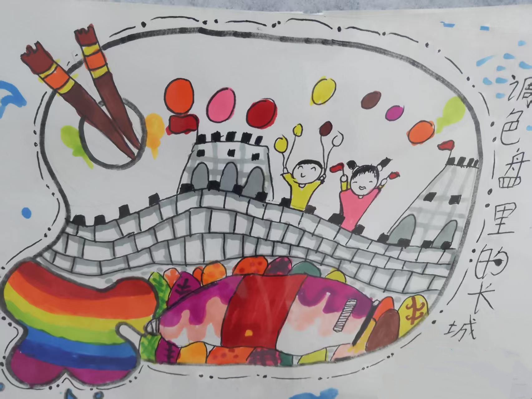 古老的长城像一条长长的巨龙,孩子们用超乎寻常的想象力染出漂亮的颜色!