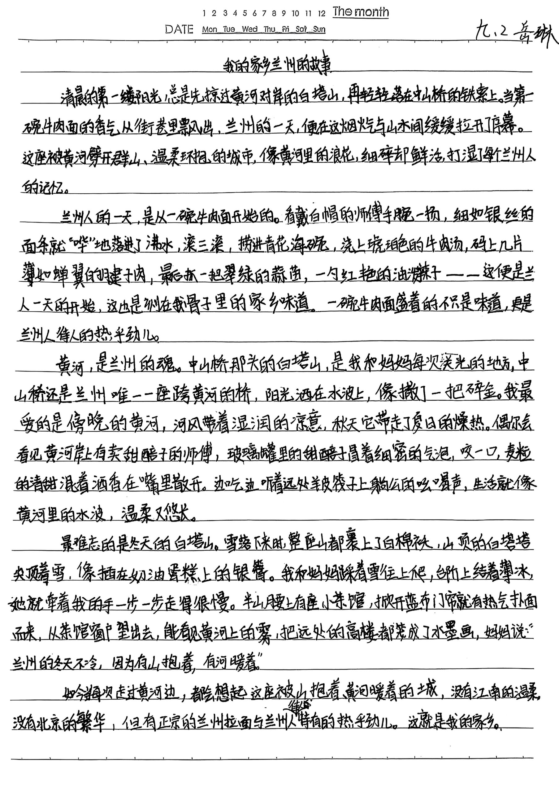 以“黄河与烟火的交响”为核心脉络,从三方面构建兰州的家乡叙事: 味觉符号层:聚焦牛肉面的制作细节,将其从美食升华为兰州人“热乎劲儿”的精神象征,让味觉记忆成为家乡文化的具象入口。 地理灵魂层:以黄河、中山桥、白塔山为载体,通过不同时段的景观(清晨的铁索光影、傍晚的河风甜醅、冬日的雪山雾景),展现兰州“山抱河暖”的地理特质与生活节奏。 情感纽带层:融入母女登山、茶馆观景等生活场景,把城市风貌与个人成长记忆绑定,凸显兰州在烟火气与自然感中传递的“温暖归属”,最终落脚于兰州独特的城市品格——无江南温婉、北京繁华,却以地道风味与人文温度,成为专属的家乡印记。