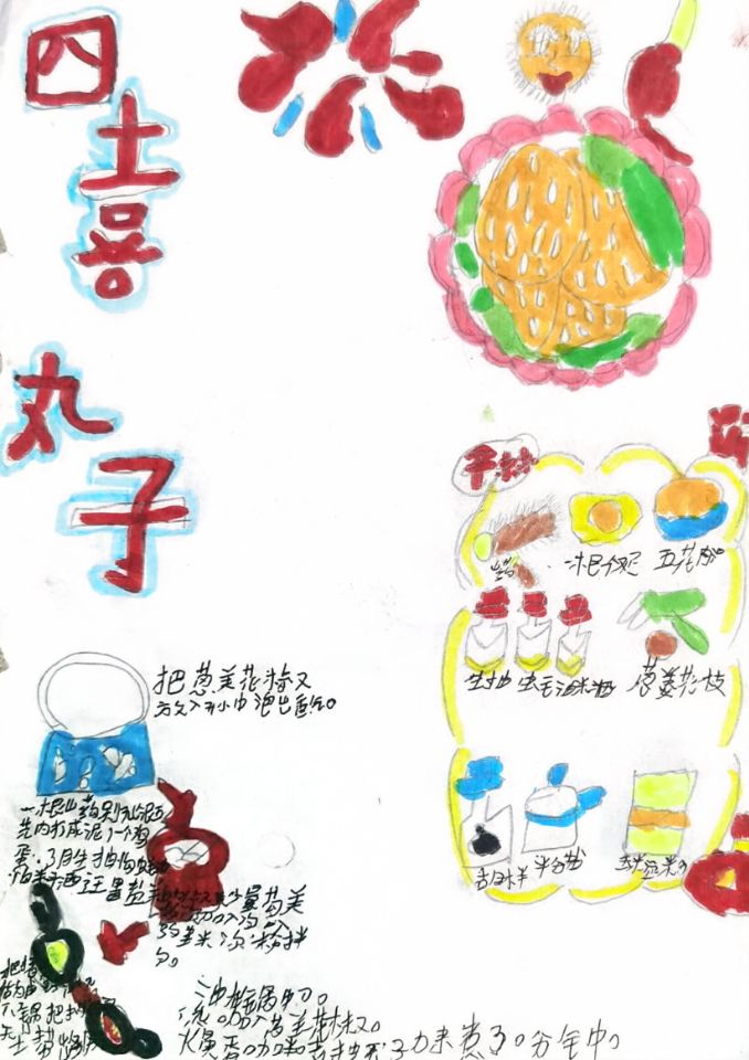 大家好!我画的是《四喜丸子美味小课堂》。四喜丸子可是超好吃的特色菜,圆圆的,看着就想吃。画里还有做它的食材和步骤呢。咬一口,肉香十足,特别美味。希望大家也来尝尝四喜丸子,感受这道特色菜的魅力,保证你吃了还想吃!